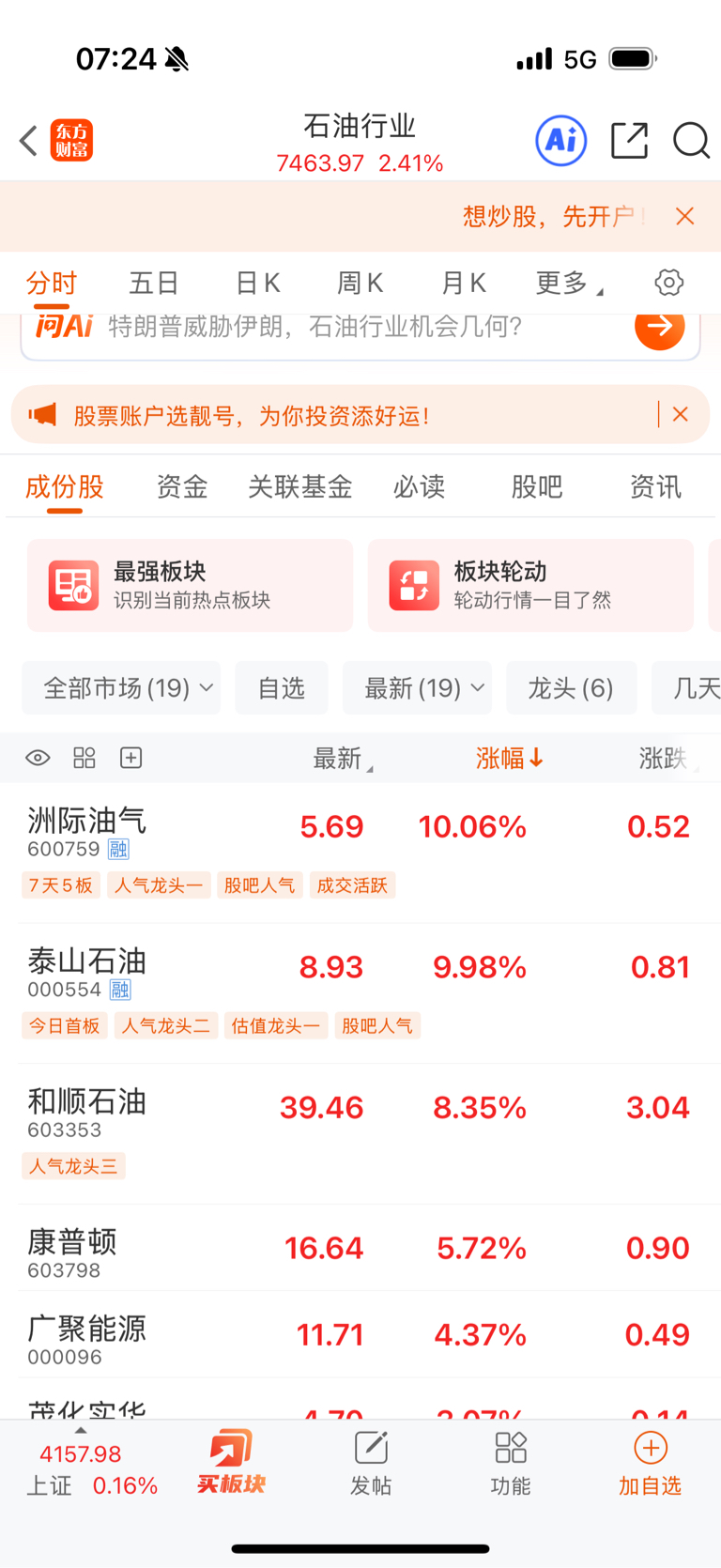 今天科技、有色可能退潮,应该轮到石油挑大樑了