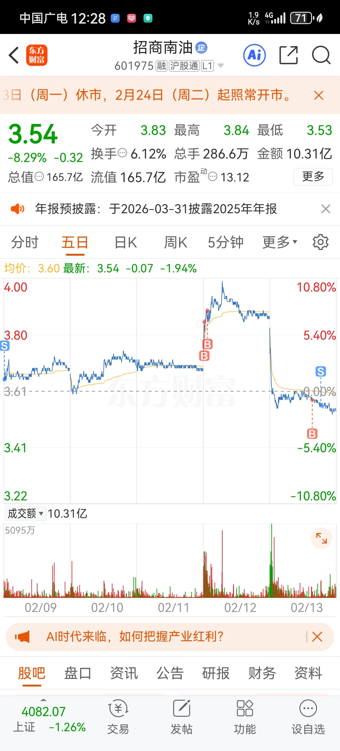 $招商南油(SH601975)$ 高位加仓一把亏光