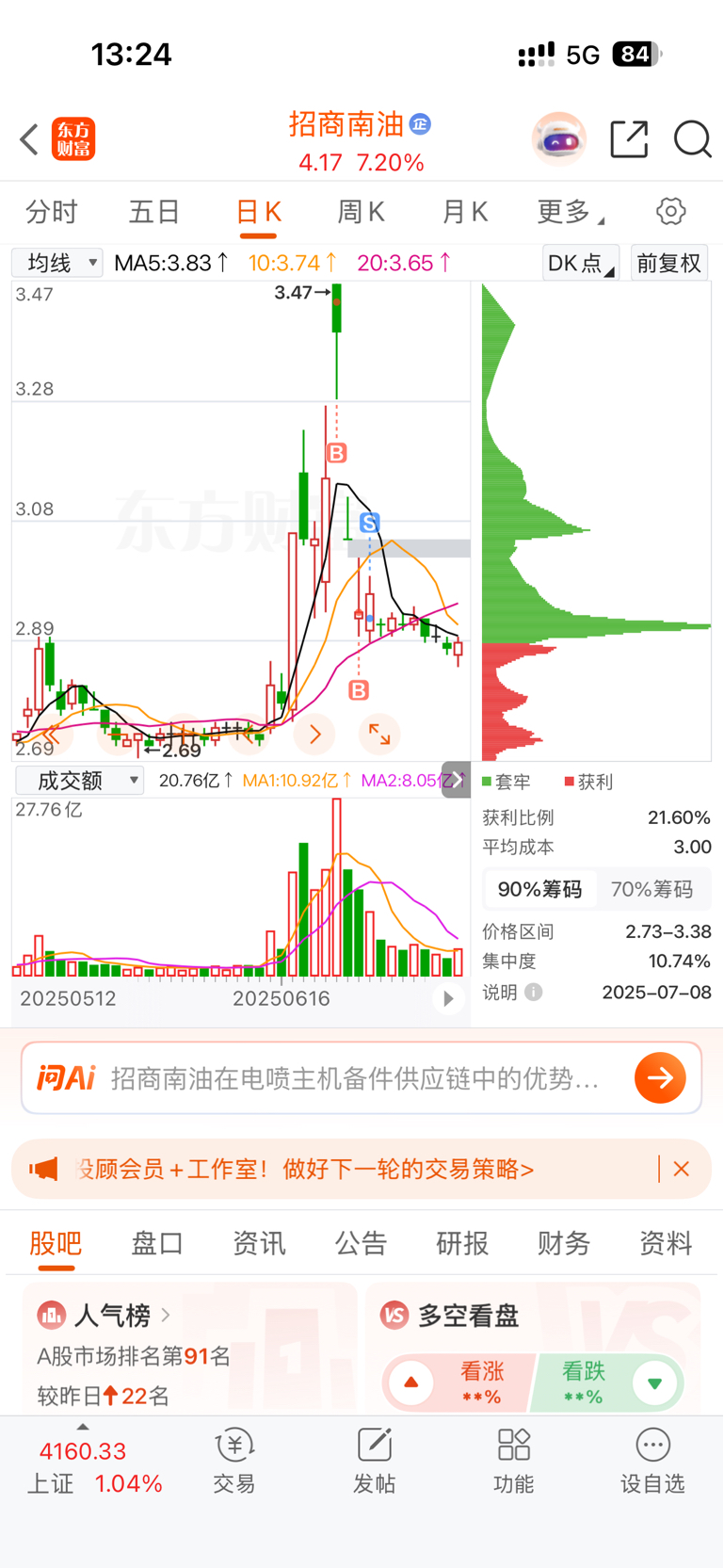 温馨提示: 1.根据《证券法》规定,禁止编造、传播虚假信息或者误导性信息,扰乱证券市场;2.用户在本社区发表的所有资料、言论等仅代表个人观点,与本网站立场无关,不对您构成任何投资建议。用户应基于自己的独立判断,自行决定证券投资并承担相应风险。《东方财富社区管理规定》