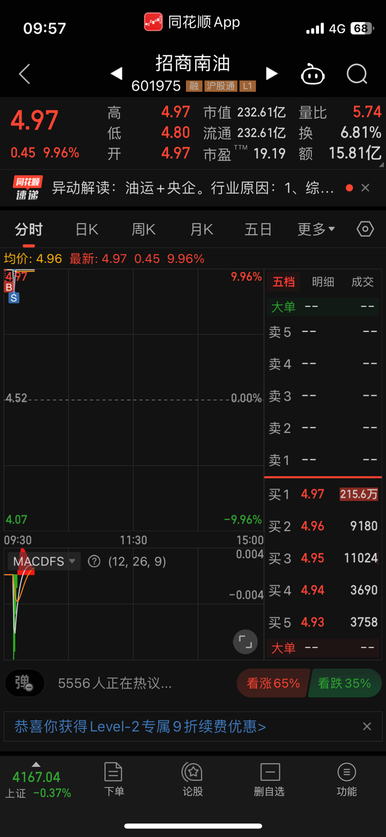 $招商南油(SH601975)$ 抽自己两吧