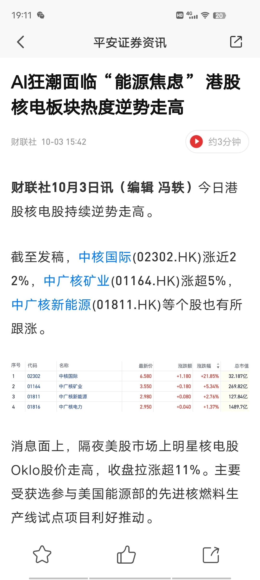 $中国核电(SH601985)$ 港股节后核电股集体上涨