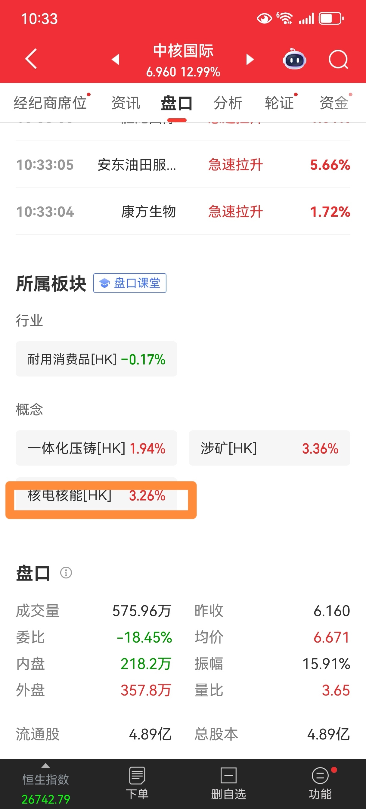 港股的核电核能板块今天还在大涨,恒指指数的跌幅还是很大的,港股是风向标,10月拿