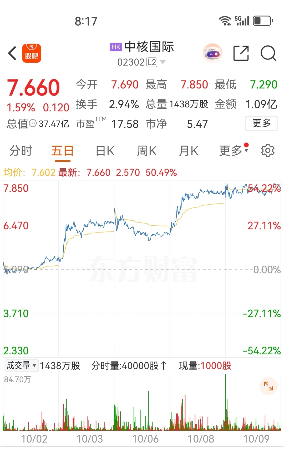 $中国核电(SH601985)$ 看看港股核电5天涨了多少。