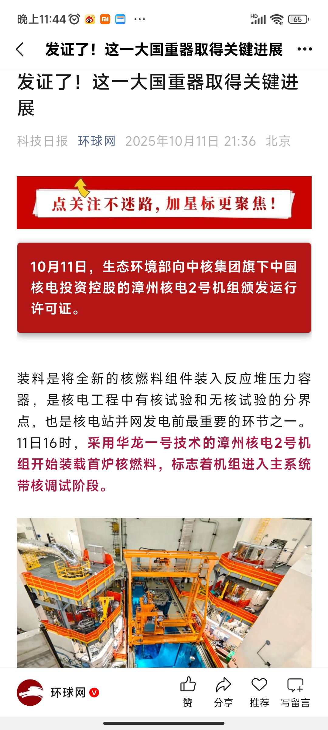 $中国核电(SH601985)$ 中国核电利好消息,央视新闻