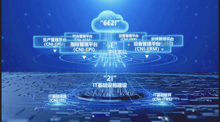中国核电“6E2I”标准化信息系统体系框架图。