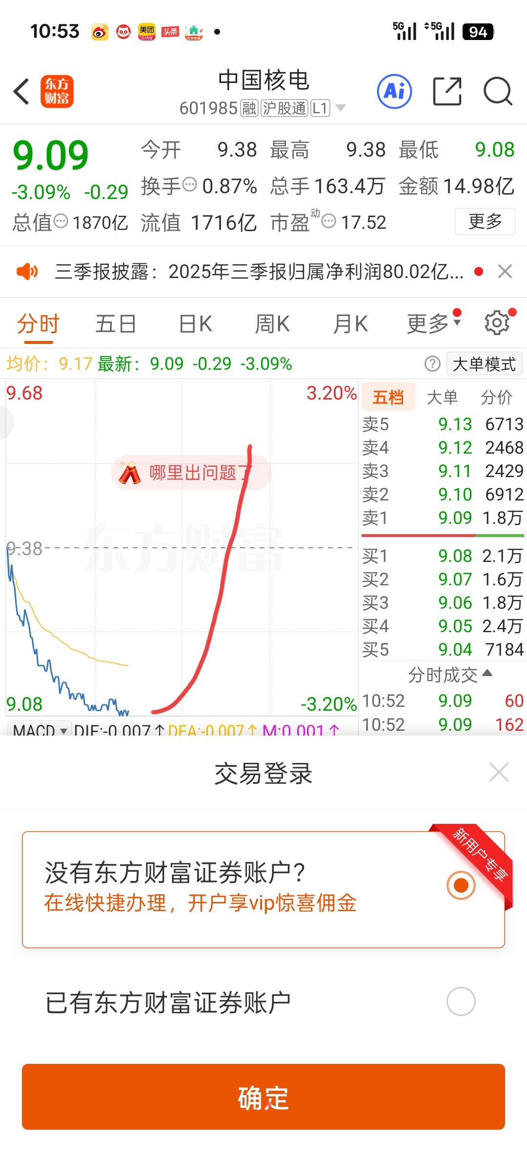 $中国核电(SH601985)$  谁知道有什么消息呀?今天跌这么多,有点莫名其妙啊。
