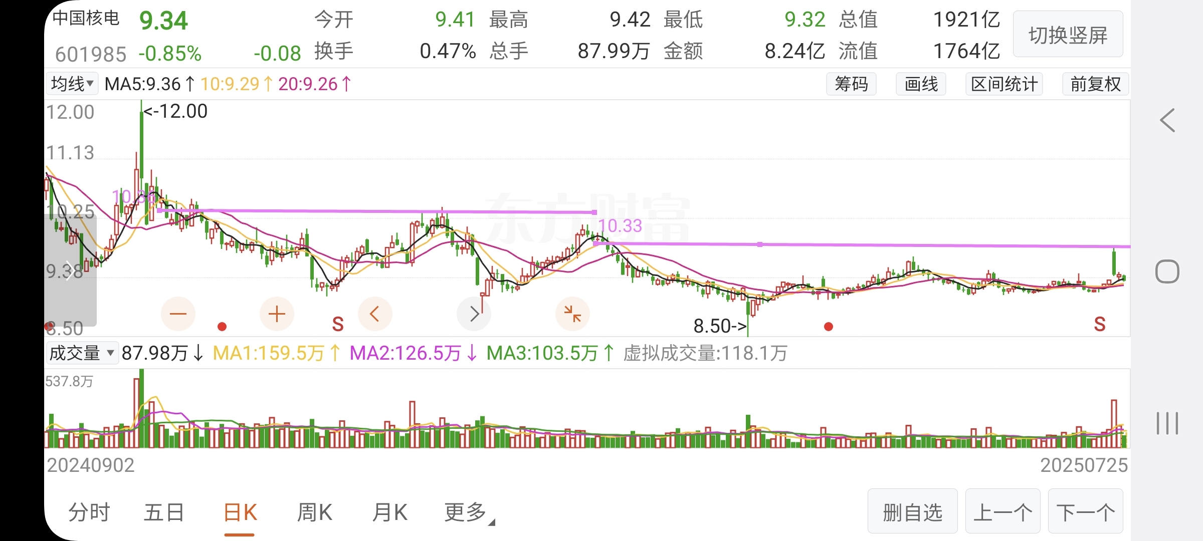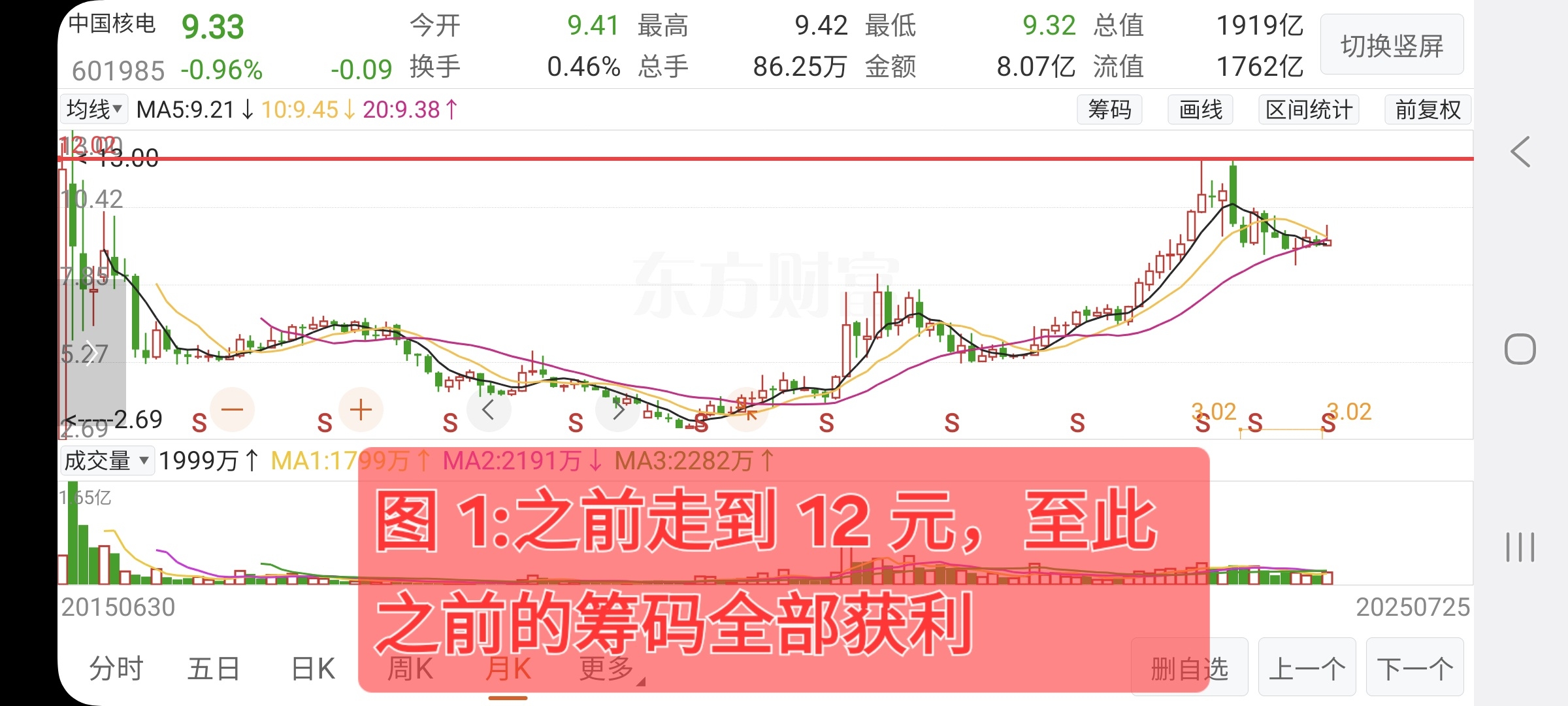 特别是前天9块8毛5。几乎把12元之后的所有套牢盘基本上全部出清。