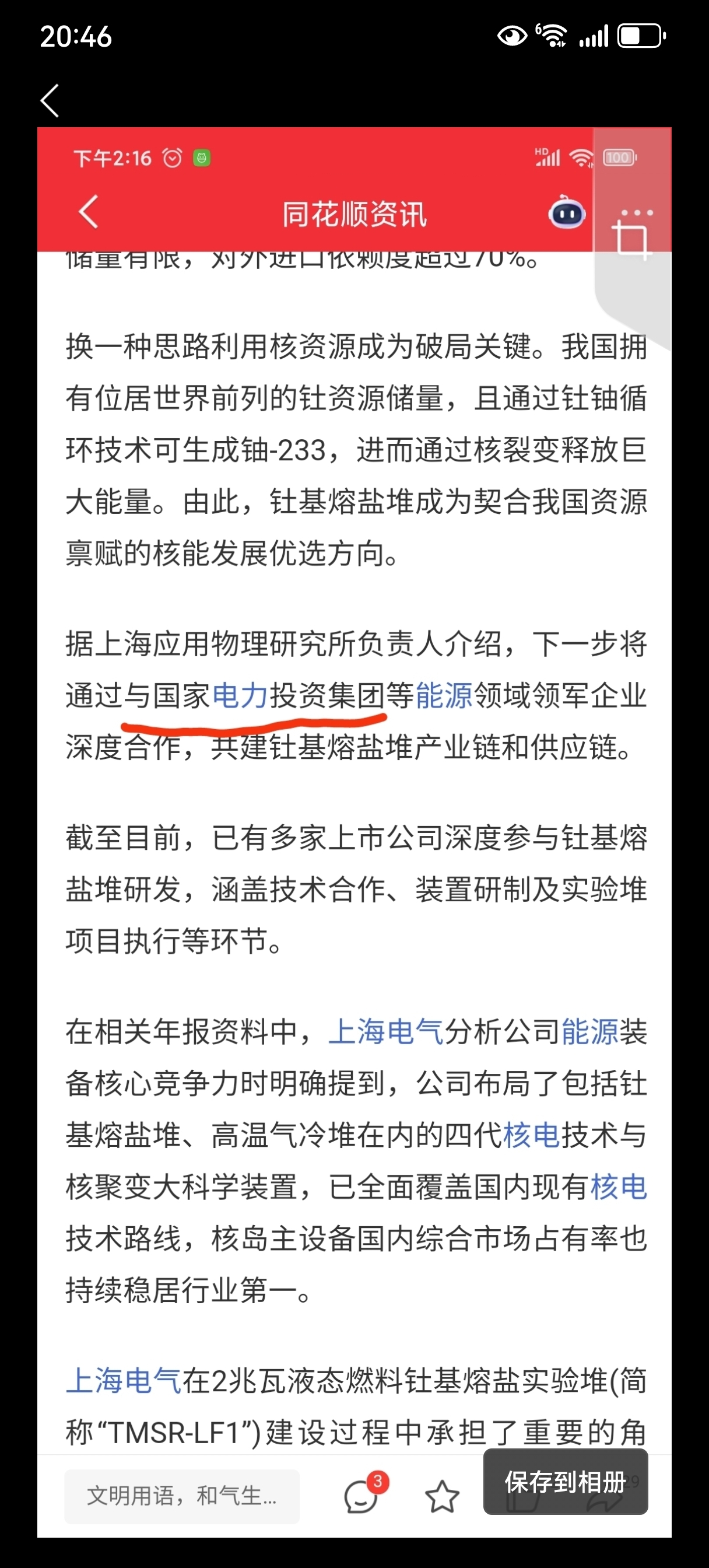 $中国核电(SH601985)$ 电投产融才是正宗第四代核电钍基熔盐堆概念股