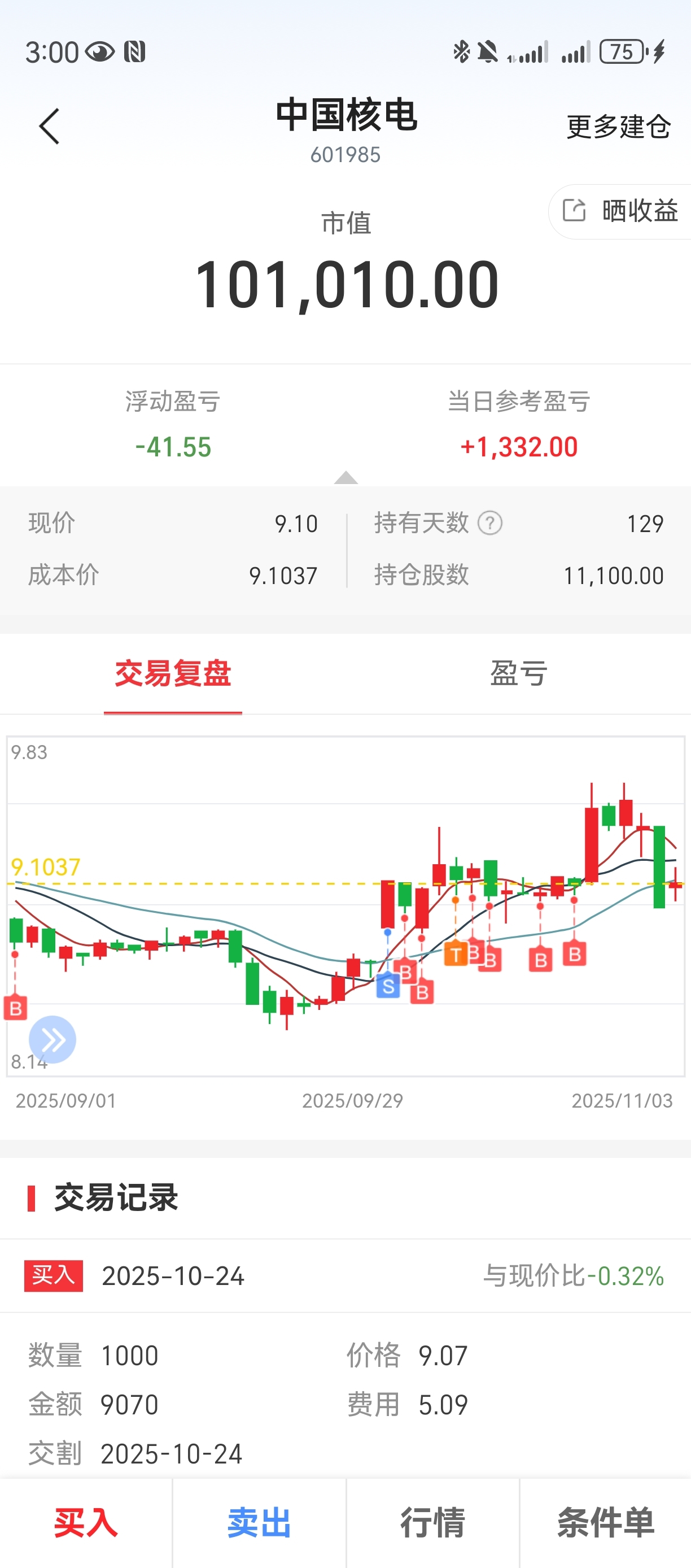 $中国核电(SH601985)$  追高真的太可怕了 还好超过9.1没加仓