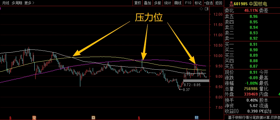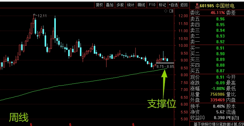 $中国核电(SH601985)$ 中期趋势走得比较一般,日线上看,最近一年都没有明显的上涨趋势,全都是被大均线压制,一般来说,这种情况就不建议重仓参与了,观察为主。同时周线上看,脚底有一个缺口还能抵挡一阵,但是如果回补下来,就得看周线大均线8.44位置的得失了,有效跌破就需要大幅减仓应对,防着破位后连续下杀。