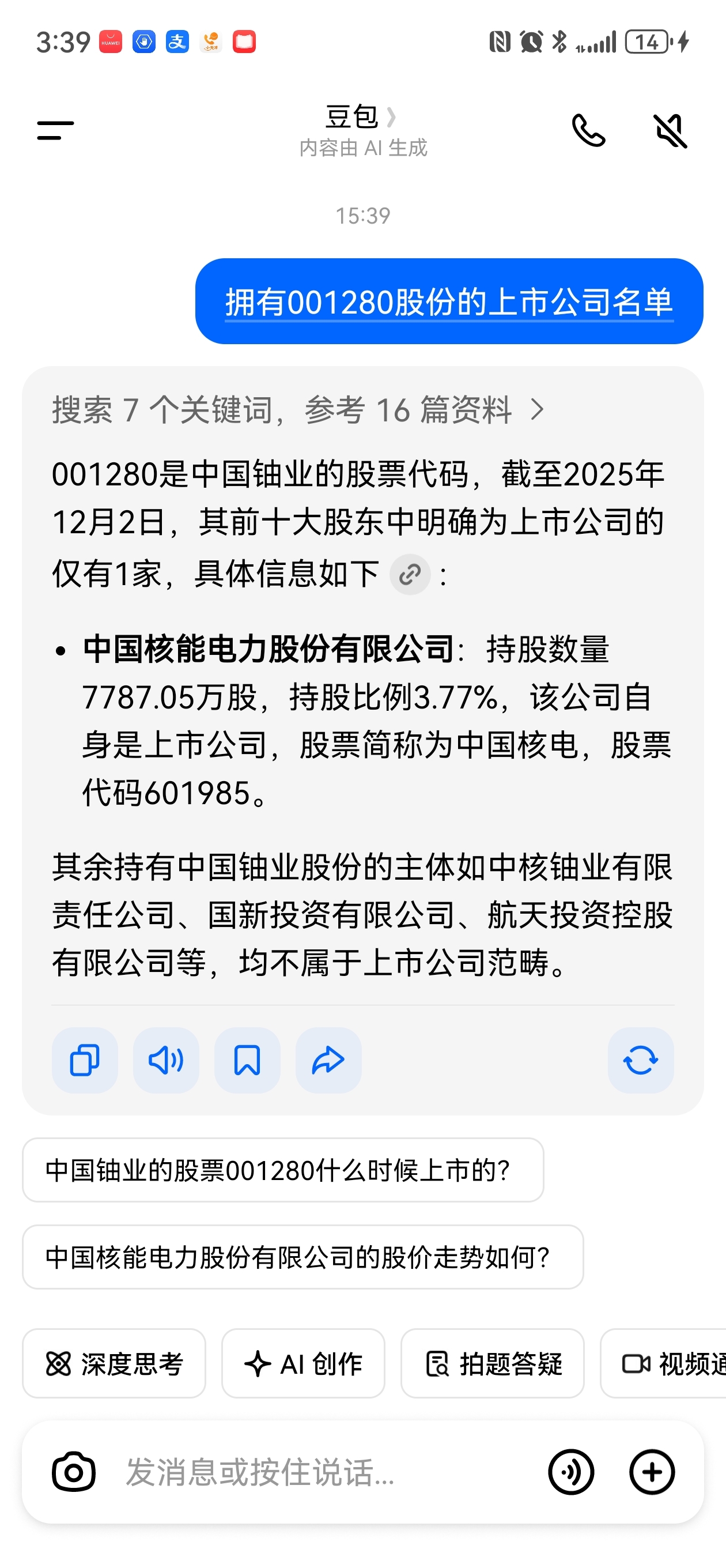 $中国核电(SH601985)$ 中国铀业明天上市,作为它的最大股东中国核电会涨吗?