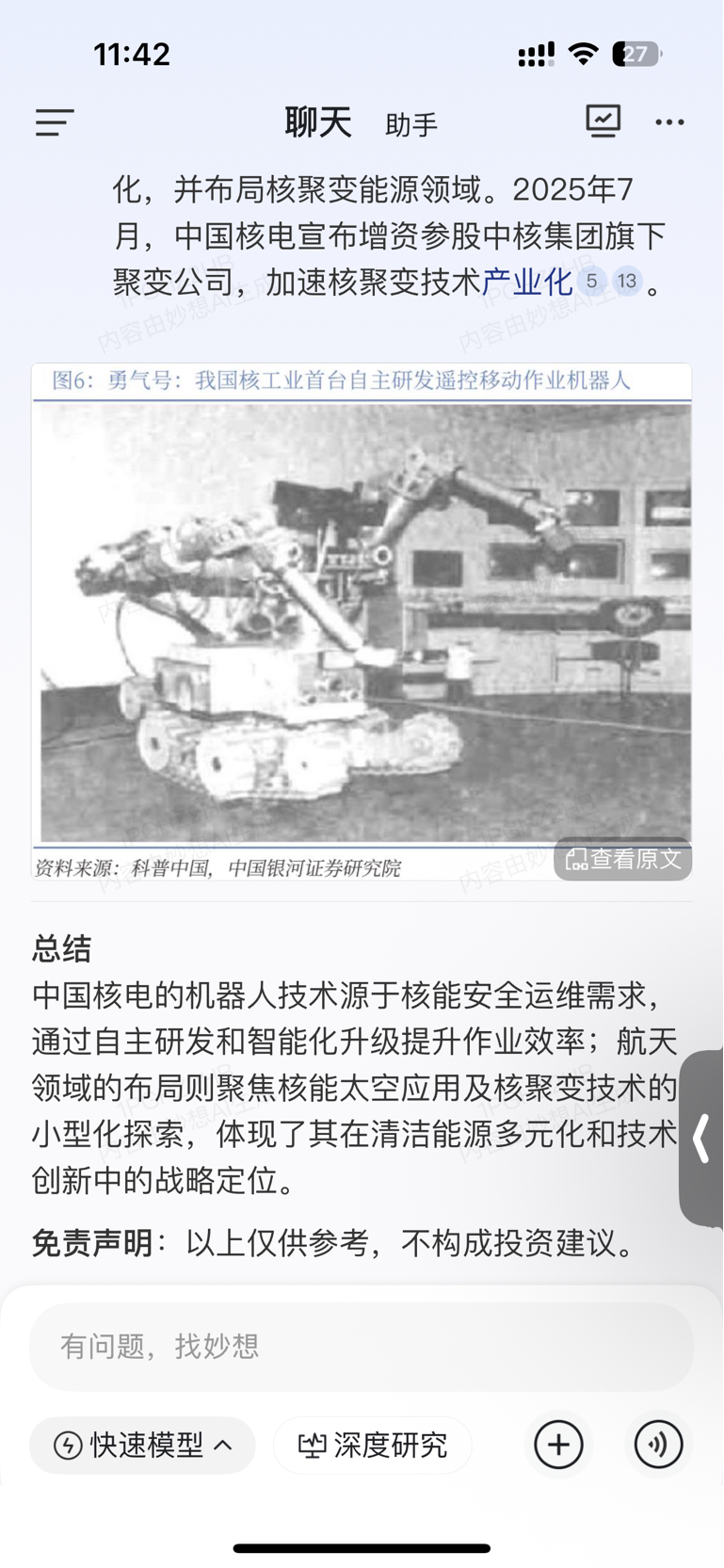 ?我搜ai说这个是中国核建靠谱吗,我问说机器人和航天呢,看图二?靠谱吗