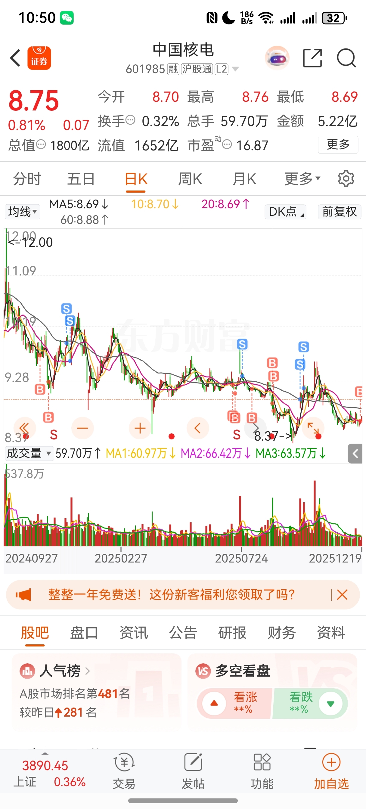 $中国核电(SH601985)$ 下跌趋势该结束了吧,这货是真够墨迹的,浪费时间啊,来个30个点的波段玩玩
