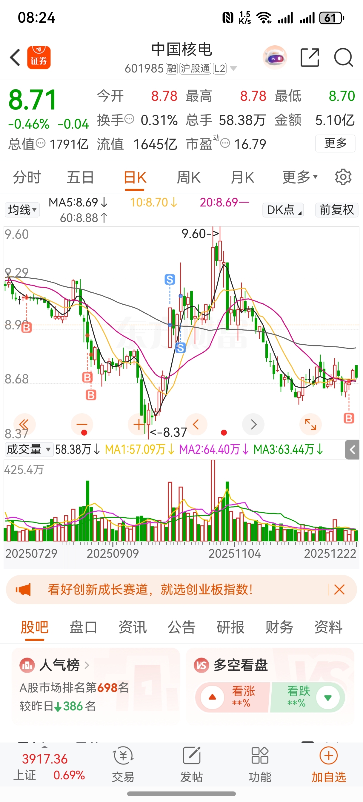 $中国核电(SH601985)$ 念在你三线交叉的面子上,买你一手,想在你身上做波段,真是痴心妄想,就当价值投资了!!