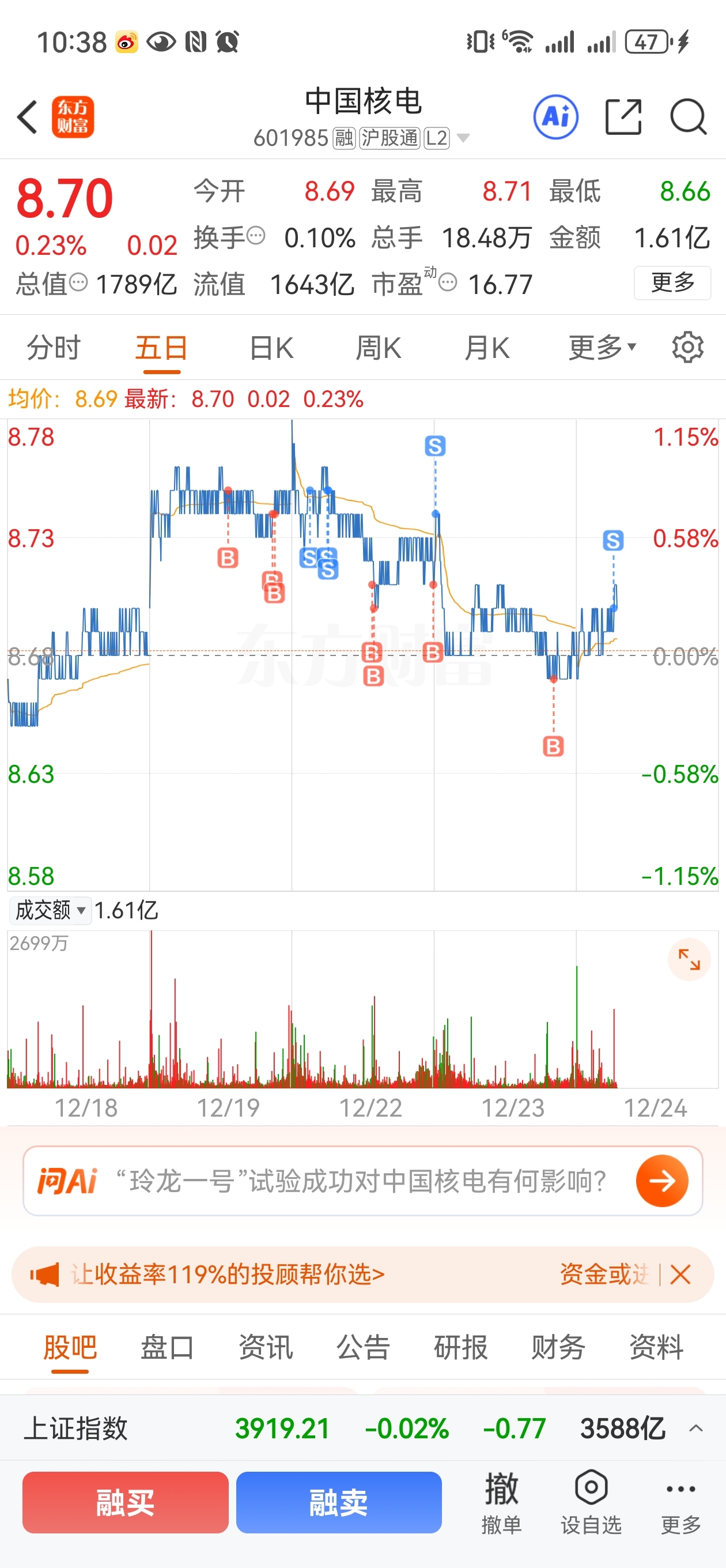 $中国核电(SH601985)$ 我做T做成这样才赚了几百