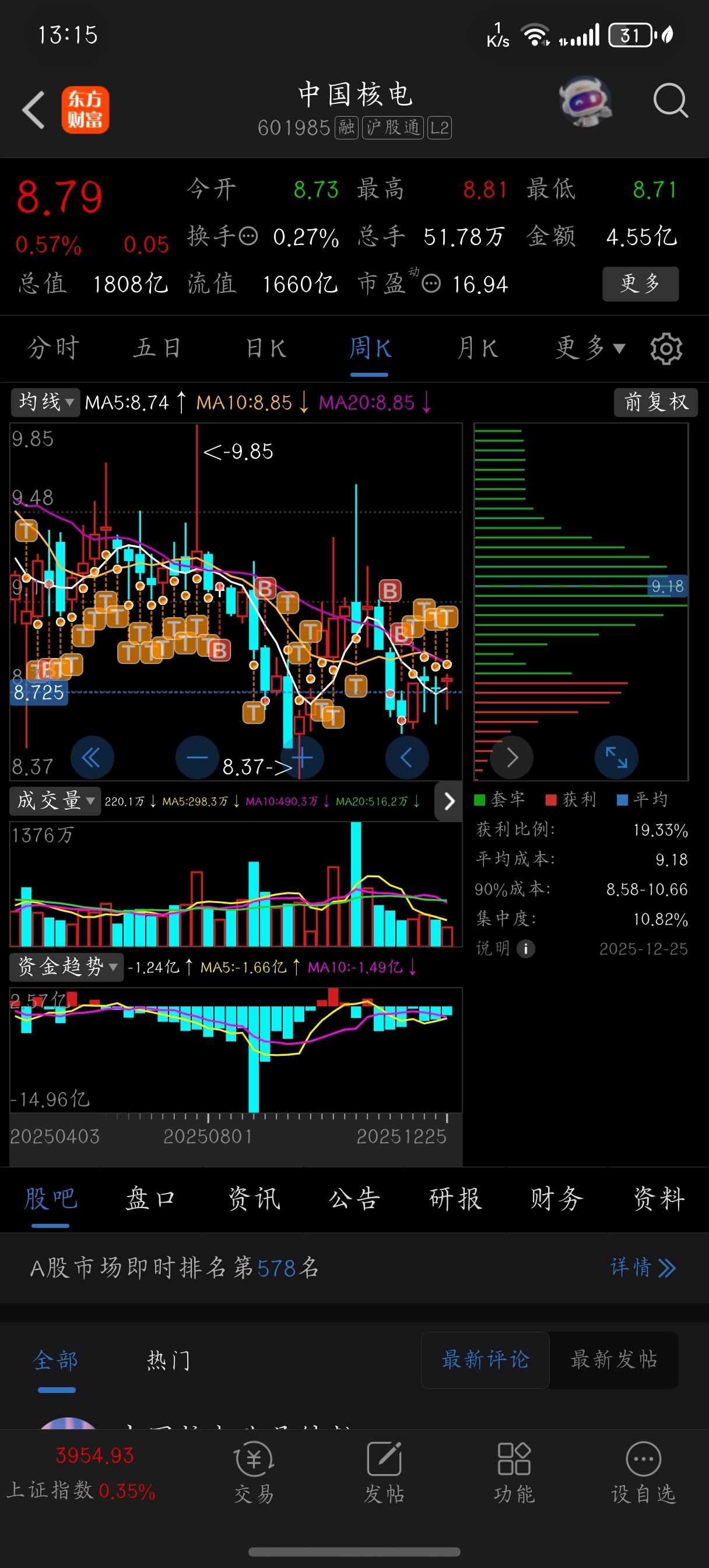 $中国核电(SH601985)$ 这T做的,9.3的成本,现在8.725
