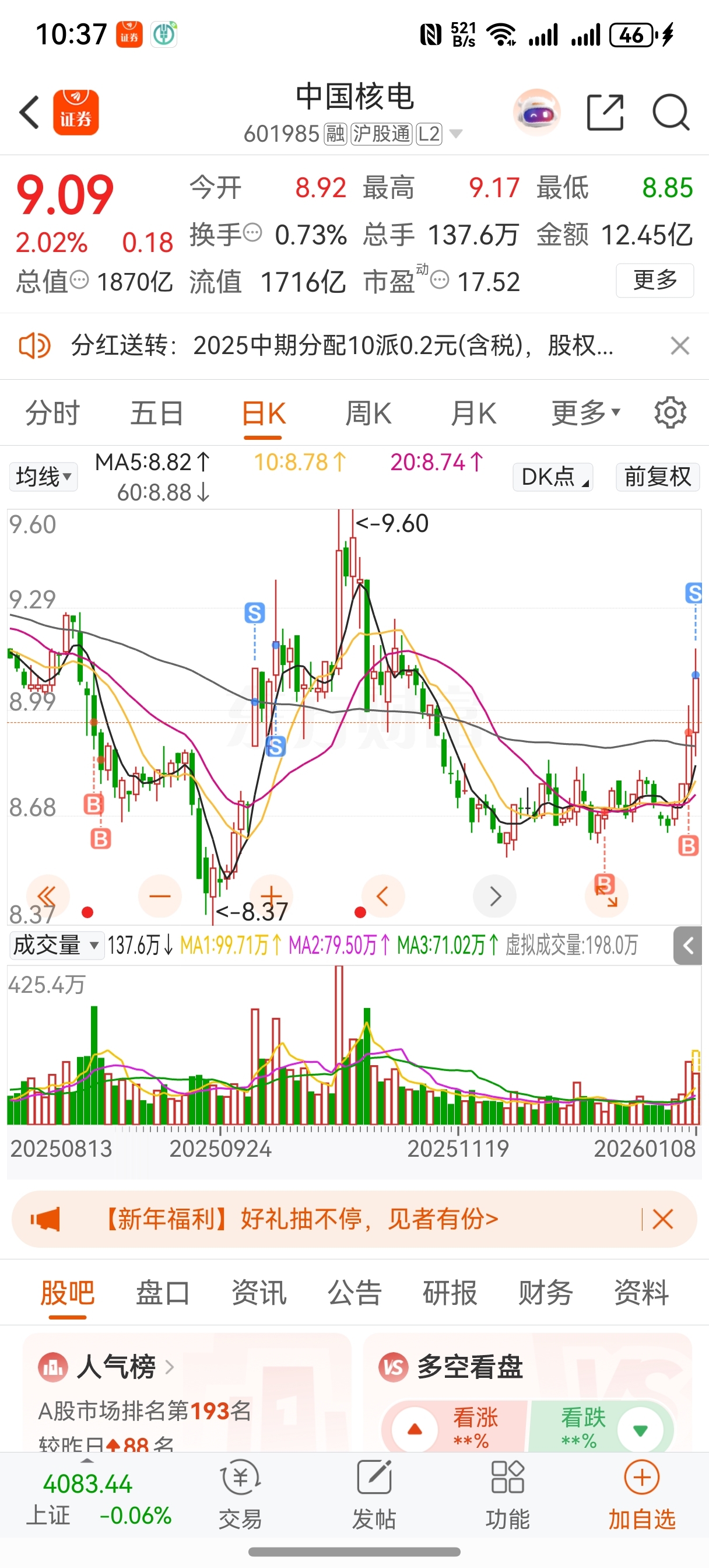 $中国核电(SH601985)$ 被套了一年多,被套半年多,终于回本了,给我冲啊,