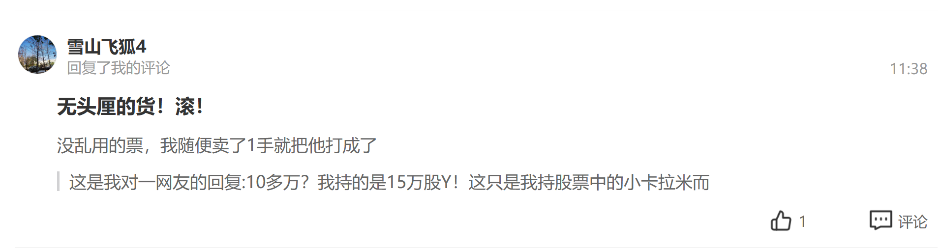 大佬,我只是想搞笑了一下下,缓解下压抑的气氛,顺便表达了下对这个票的不满,不是对你的不满哦,也不是要唱空啊!没必要这么生气吧!生气会犯嗔戒的,能和为贵不把我拉黑名单吗?谢谢!