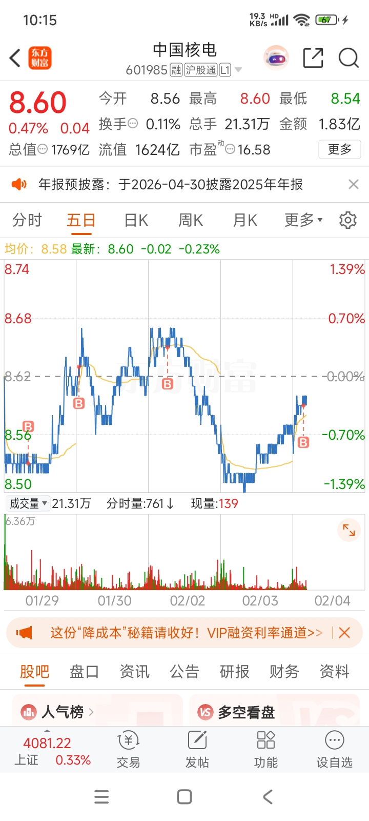 $中国核电(SH601985)$ 今天不会涨停吧,先搞点