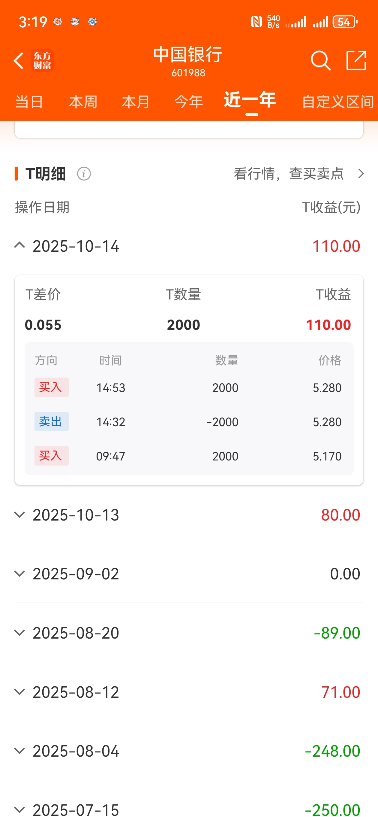 $中国银行(SH601988)$ 大家帮我看看 这个t收益好像有问题吧