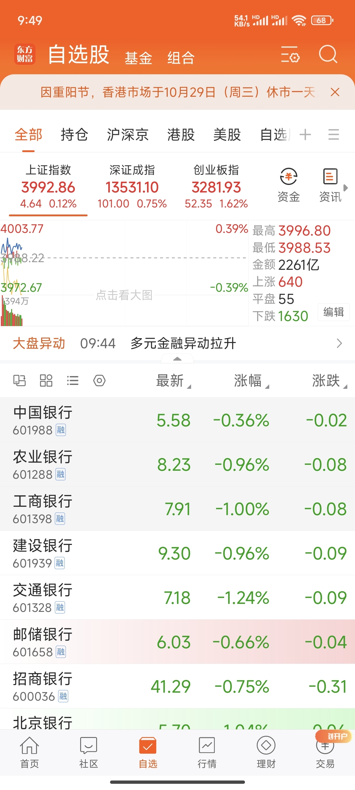 $中国银行(SH601988)$ 中行是最抗跌的股票,稳稳拿着,长期持有