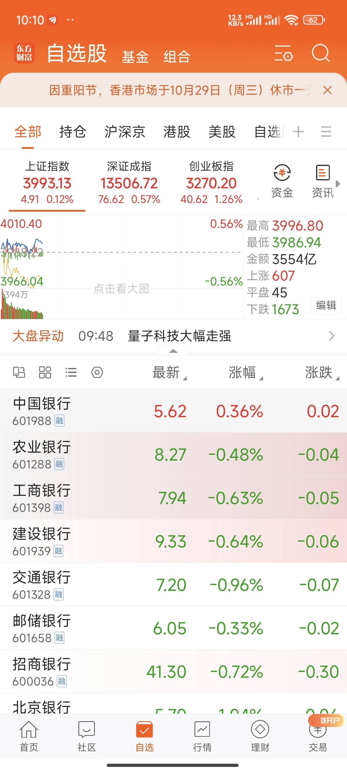 2025年10月29日涨幅榜第一中行谁敢不服,看好中行,长期持有