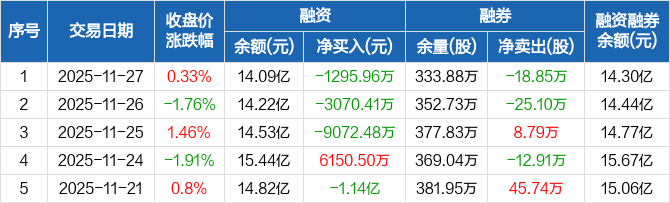 中国银行:连续3日融资净偿还累计1.34亿元(11-27)