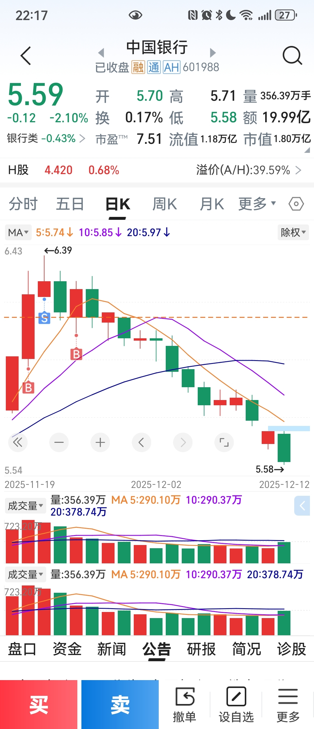 $中国银行(SH601988)$ 哭晕了,重仓的大中行