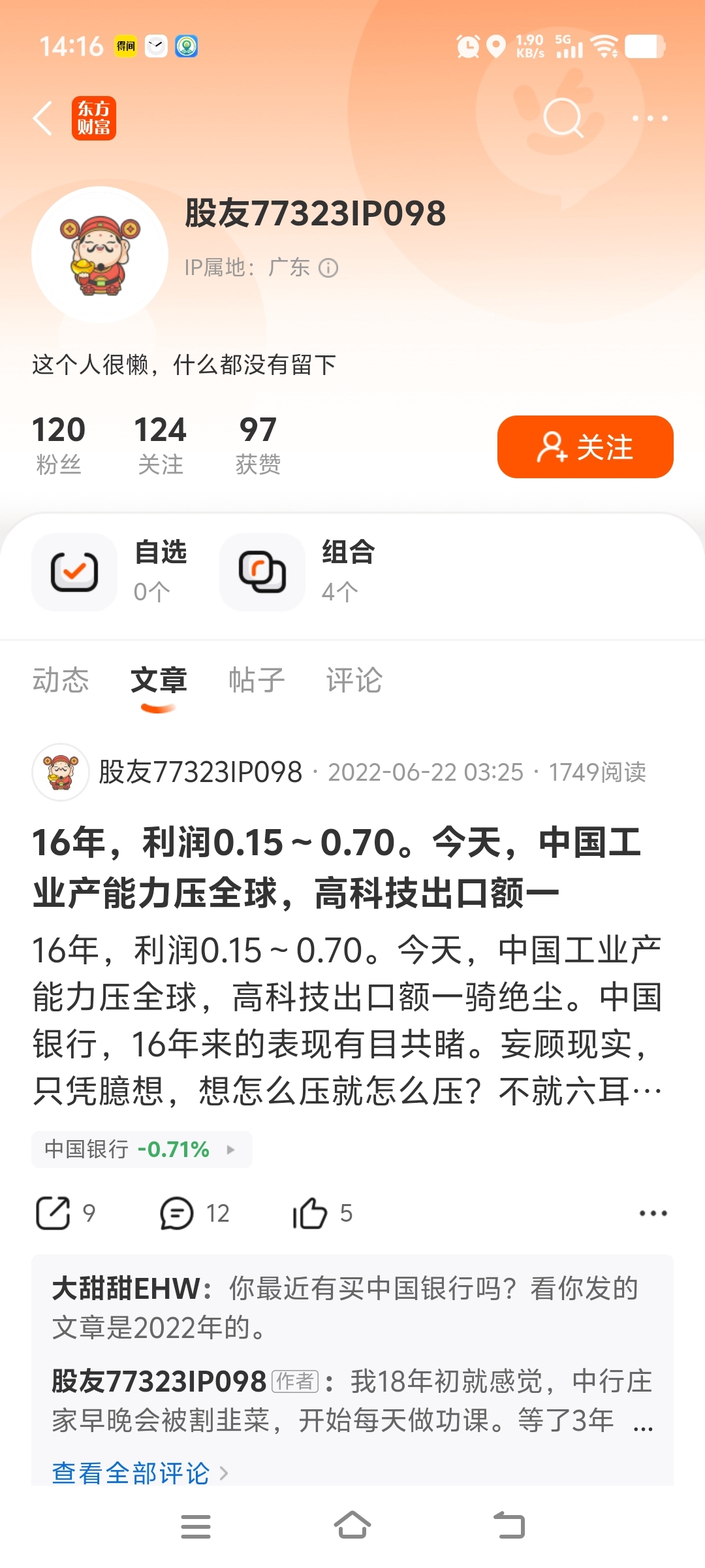 $中国银行(SH601988)$ 老子满仓,我不是股民,你TM的垃圾谁告诉你的,098勾垃圾,你TM的勾垃圾,中行勾