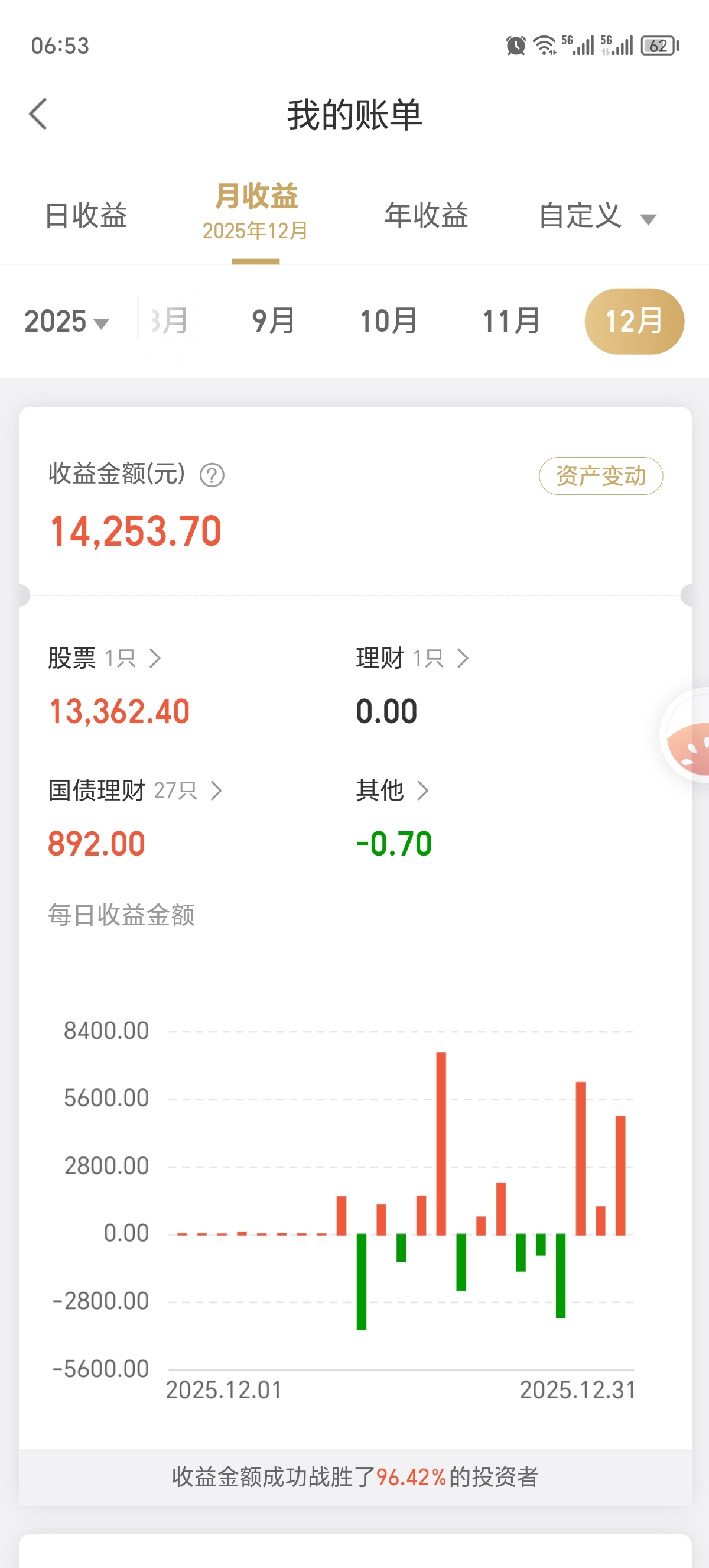 2025年结束啦。开始2026年新的征程了!感谢中国银行。本来以为12月份没行情