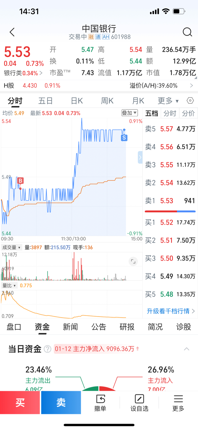 $中国银行(SH601988)$ 胆子都吓破了,t了几分钱马上跑出来,可怜的小散