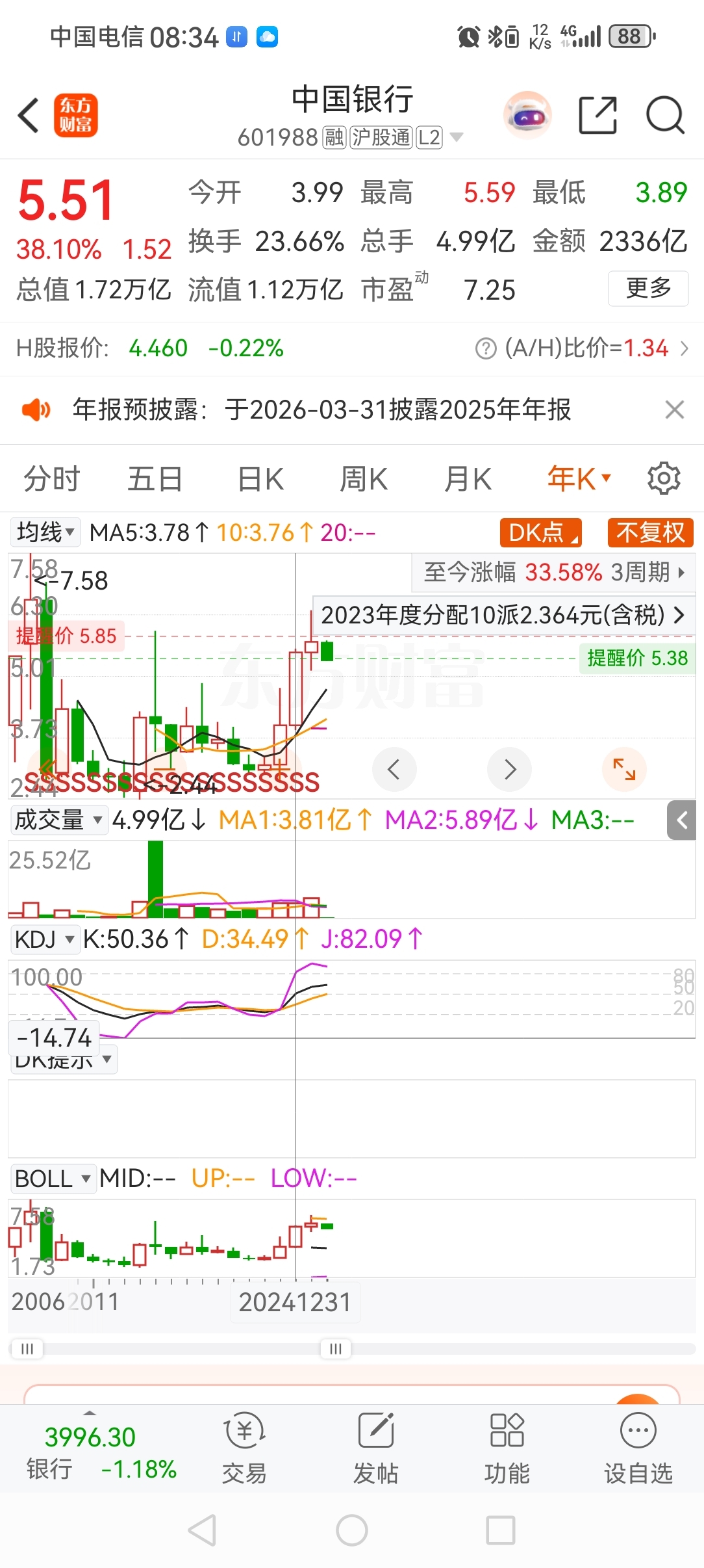 半个月,亏掉了去年一年的涨幅,中国银行,有你的,加油