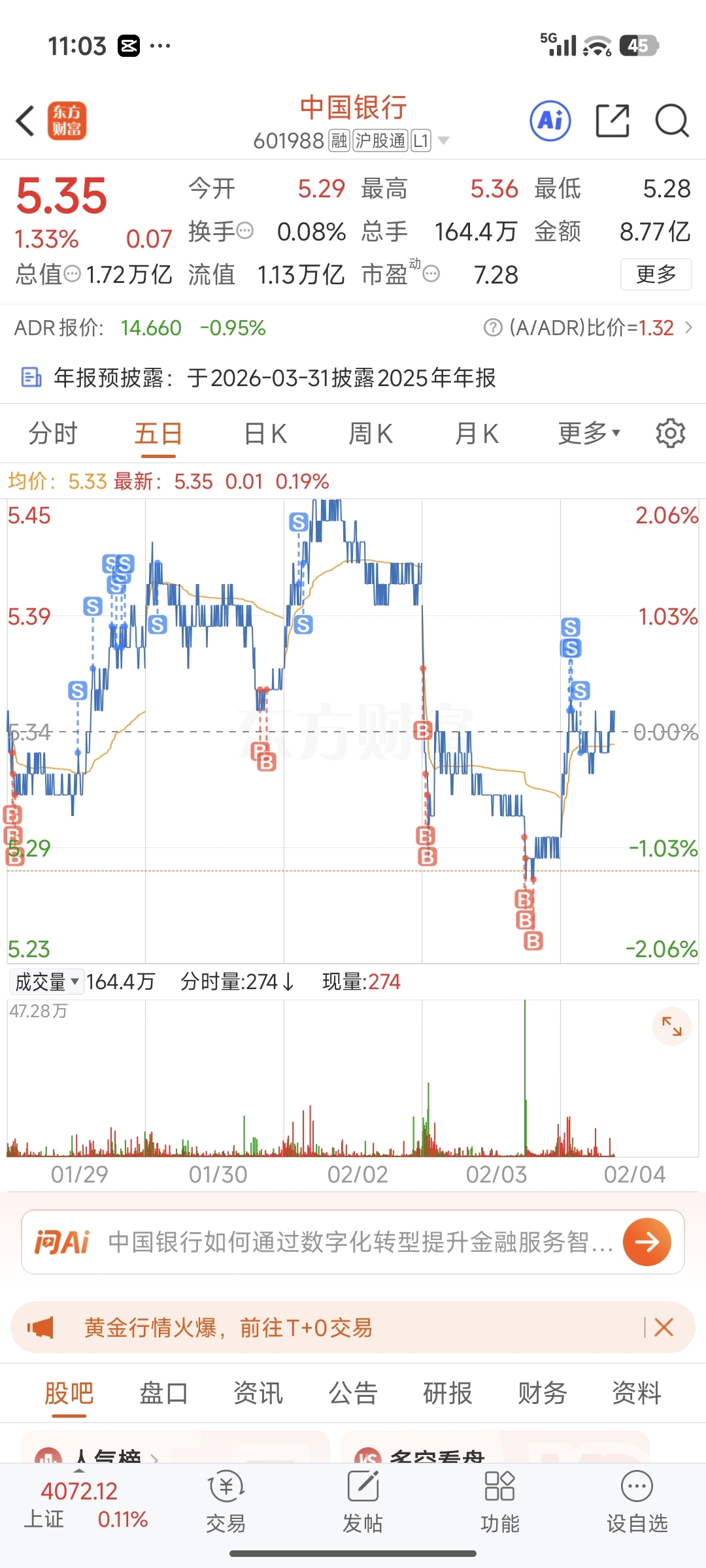 $中国银行(SH601988)$ 长期看好,但还是T一下,跌下来,再慢慢接回来!剩1/3仓。涨跌都不怕!
