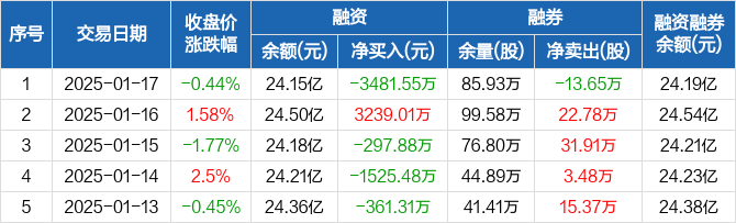中国重工:融资净偿还3481.55万元,融资余额24.15亿元(01-17)