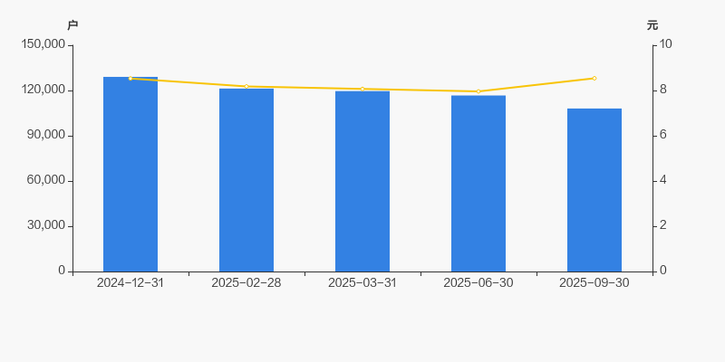 自2024年12月31日以来,公司股东户数连续4期下降,截至目前减幅为16.25%。2024年12月31日至2025年9月30日区间股价上涨0.16%。