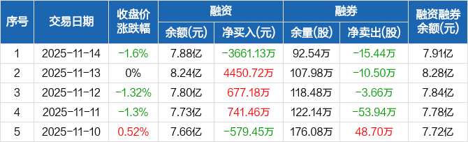 大唐发电:融资净偿还3661.13万元,融资余额7.88亿元(11-14)