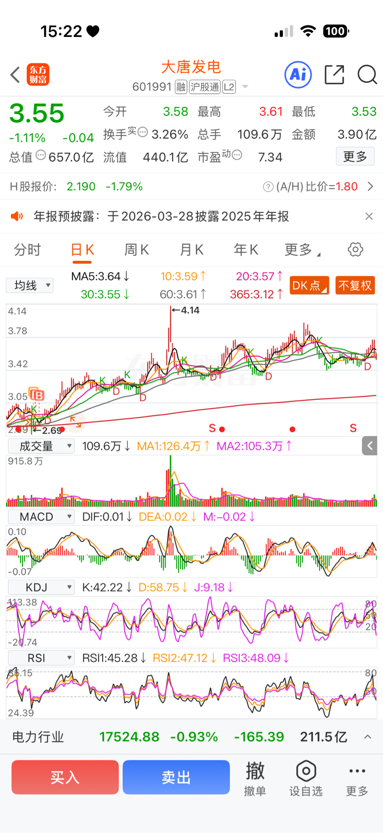 $大唐发电(SH601991)$ 对于长期持有的来说,这种调整也没什么好担心的,坚定看好,趋势向上