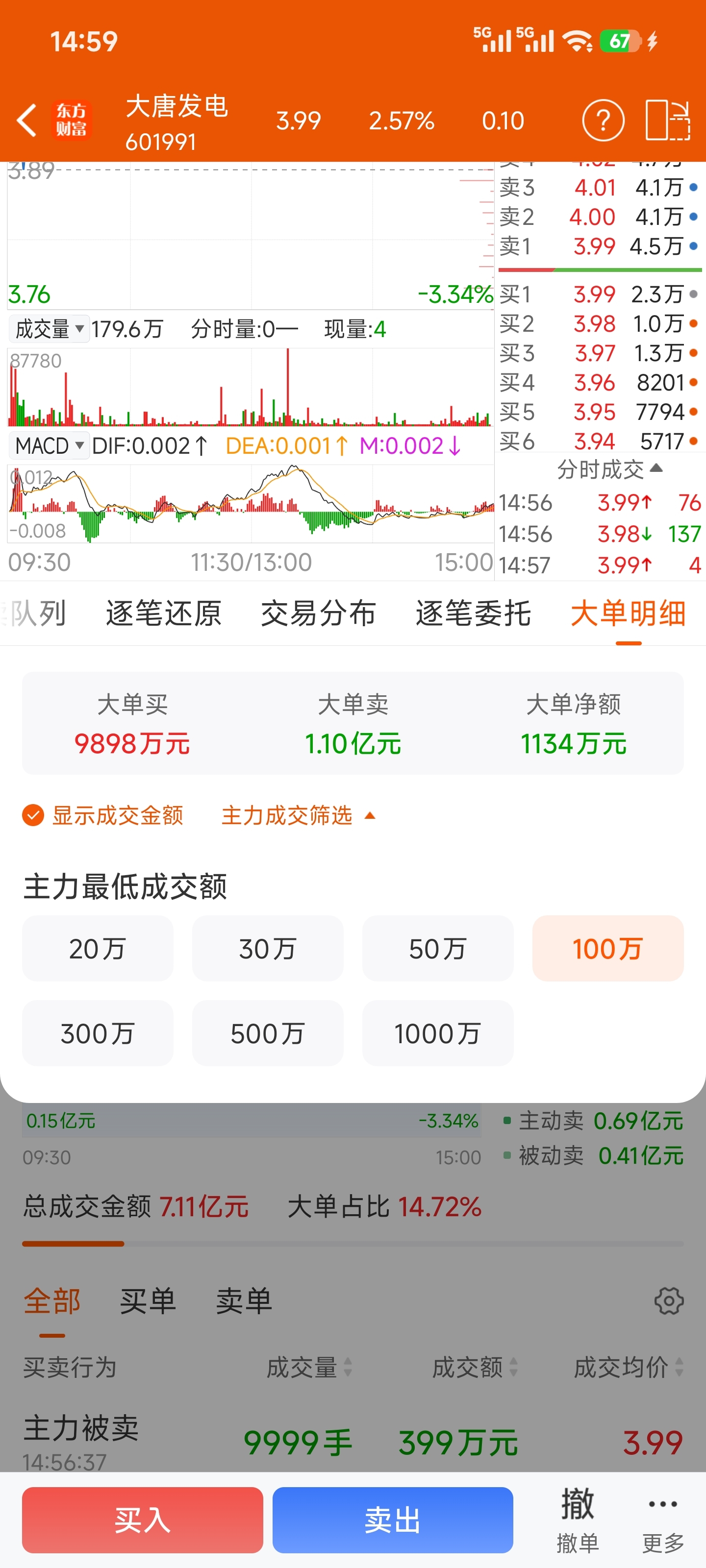 $大唐发电(SH601991)$ 小单进大单出