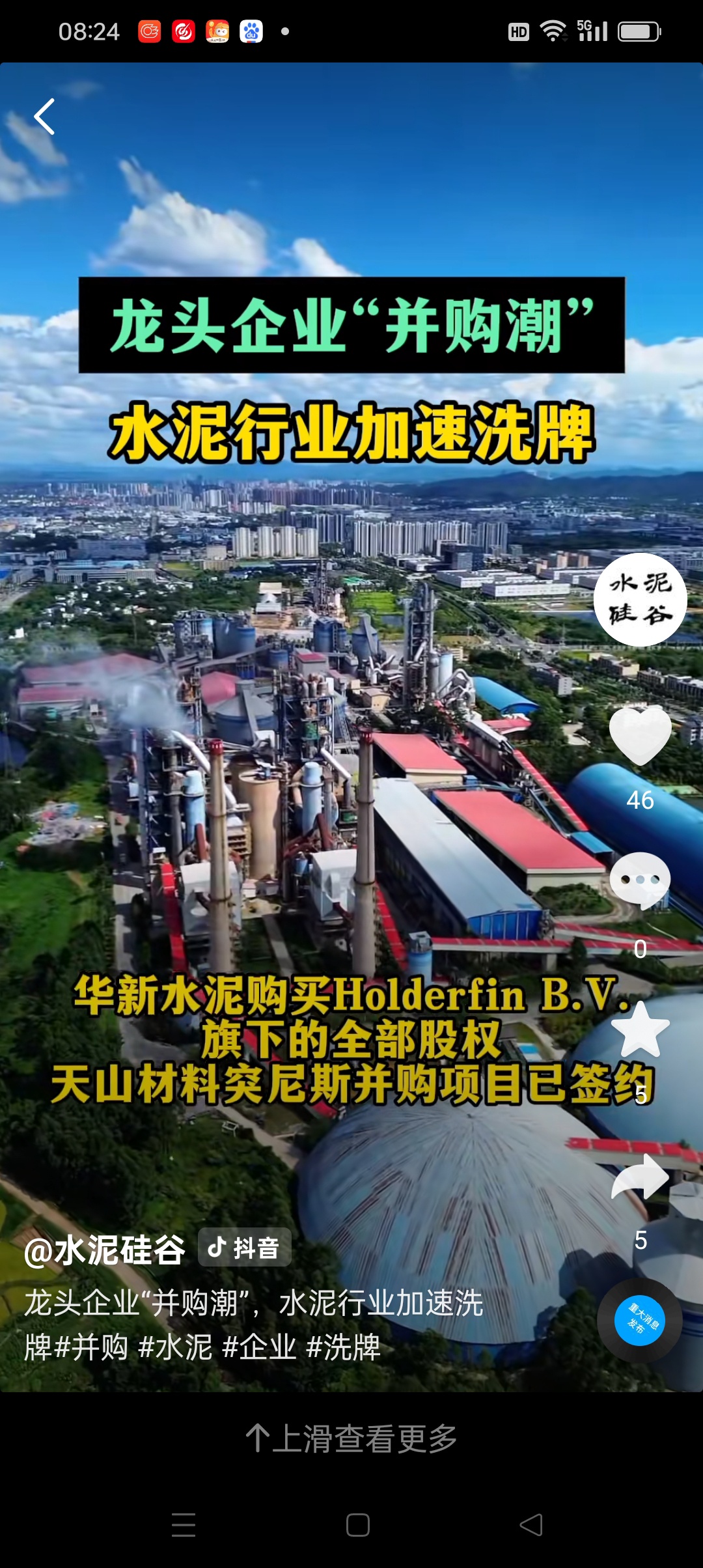 水泥建材行业拥有矿石矿山矿权最多稀土元素的大金主是金隅国际。并购重组加速收购全球