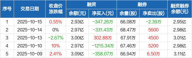 金隅集团:融资净偿还347.26万元,融资余额2.93亿元(10-15)