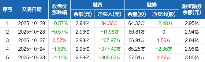 金隅集团:融资净买入84.36万元,融资余额2.94亿元(10-29)