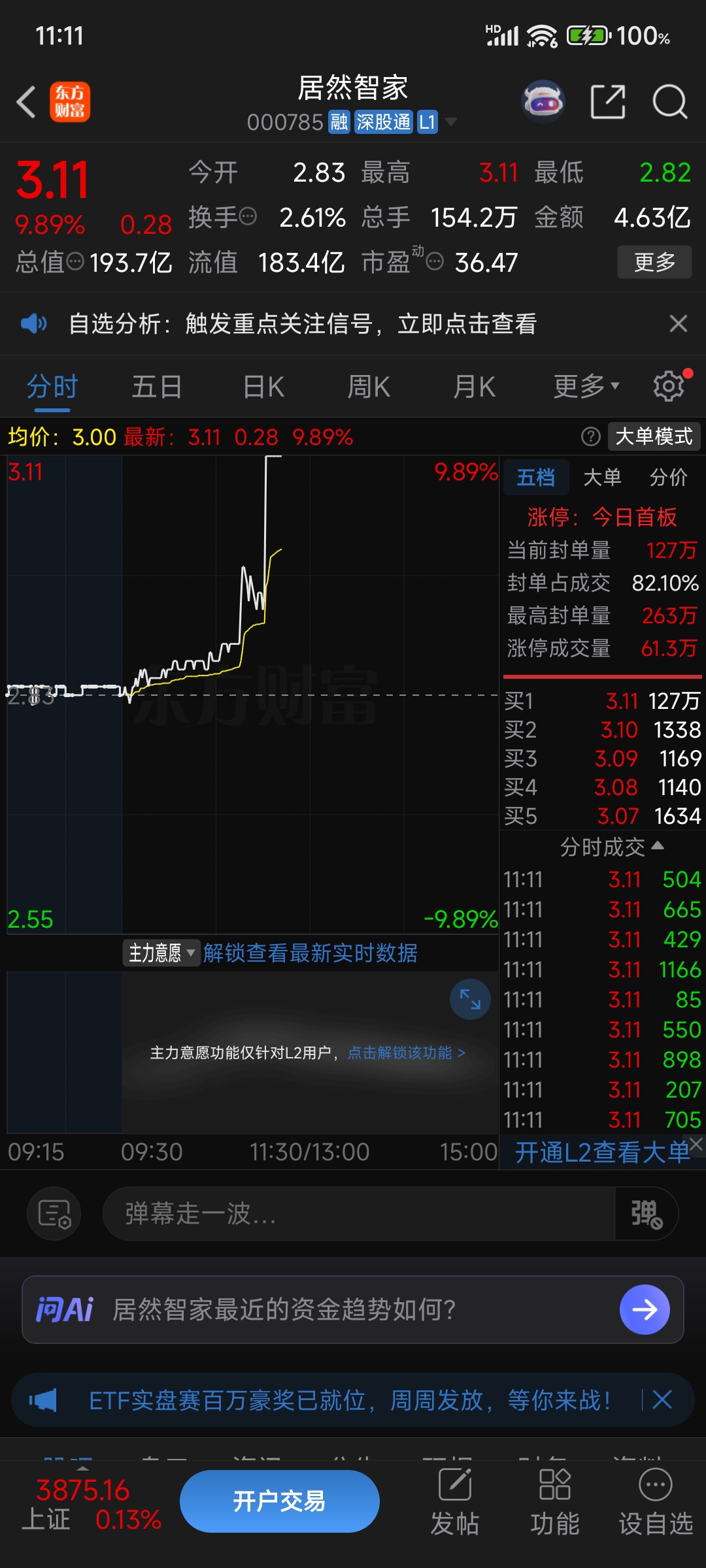 突发!居然之家000785涨停,金隅集团持有居然之家10.1%股份!