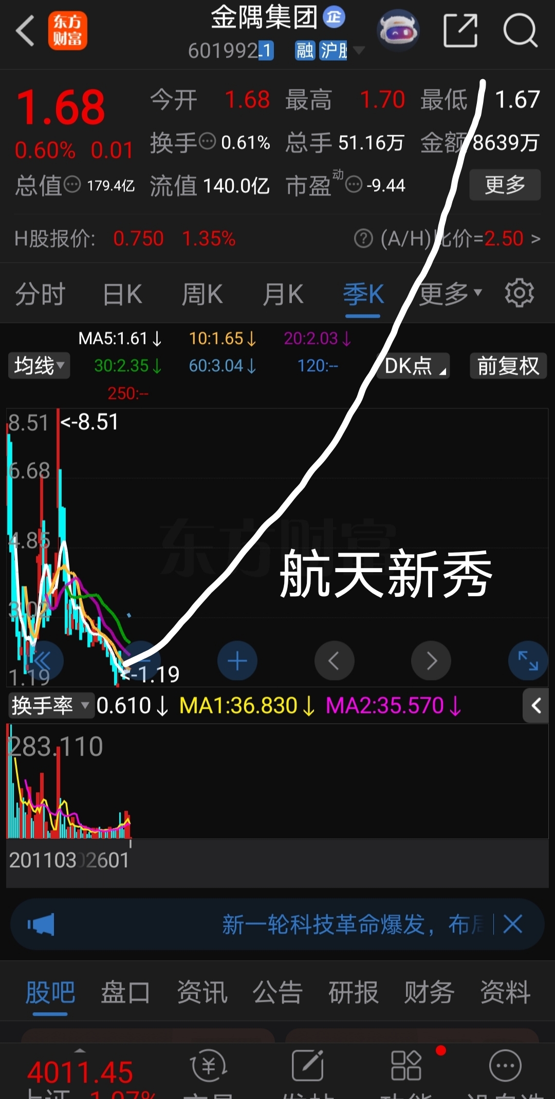 $金隅集团(SH601992)$ 唯一未涨航天股
