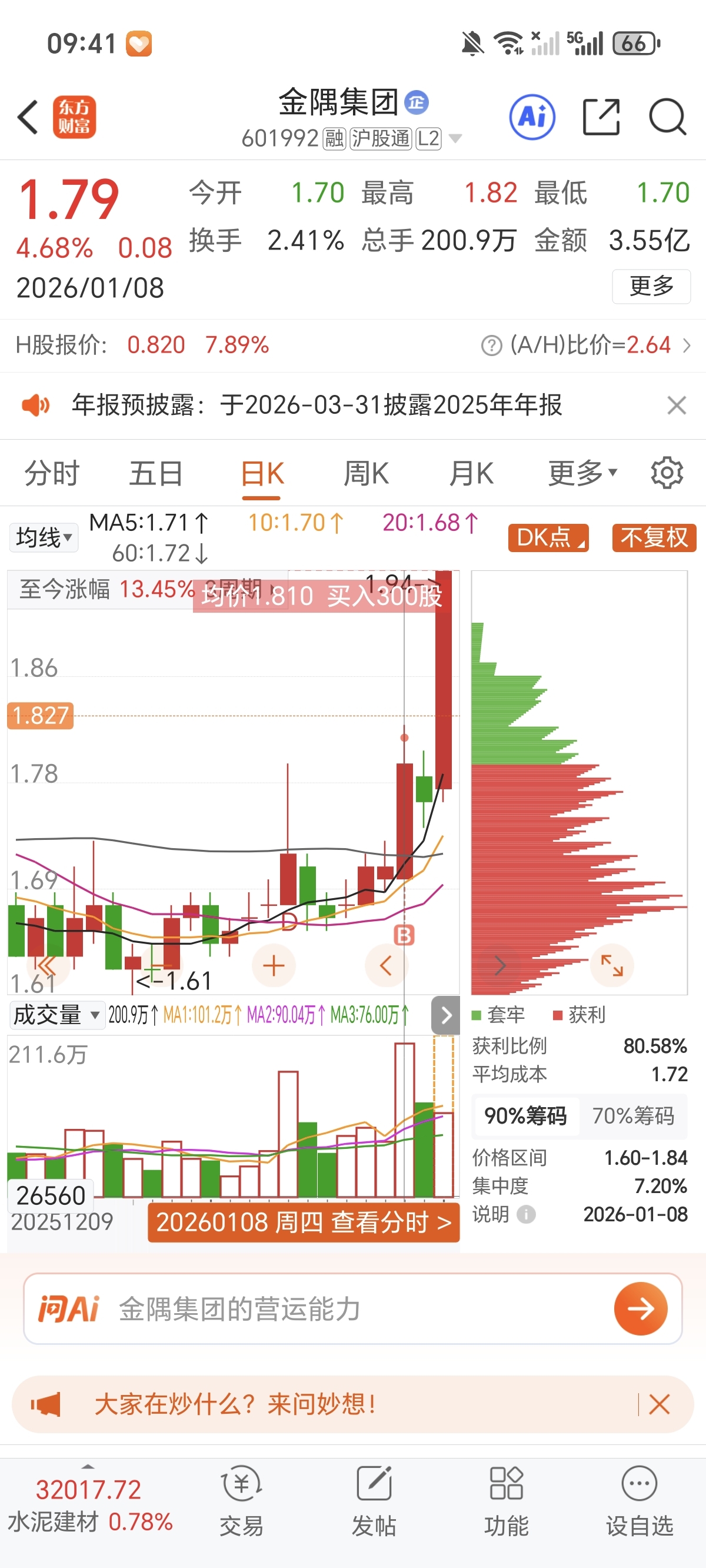 $金隅集团(SH601992)$ 好消息,涨停了,坏消息,只买了3手玩玩