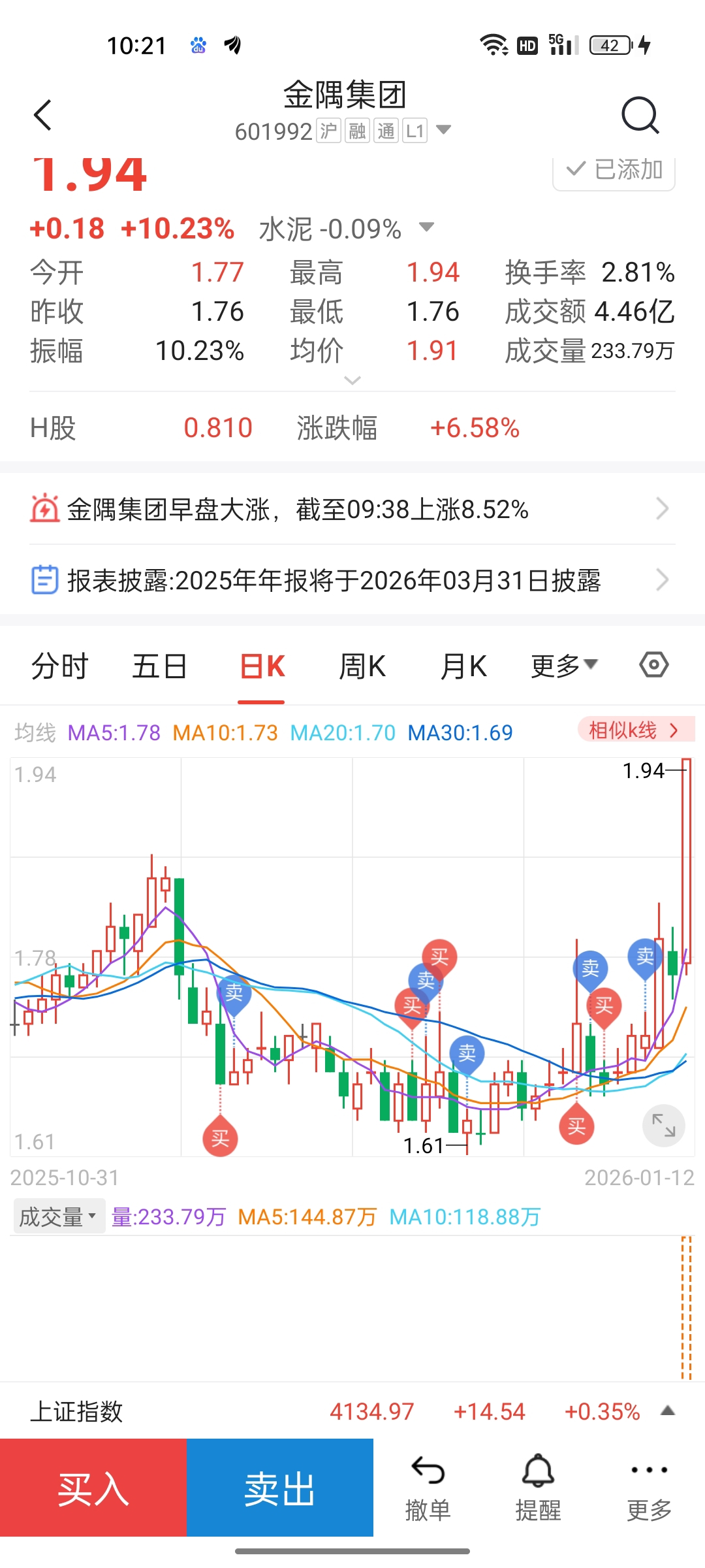 $金隅集团(SH601992)$ 就三个交易日没进来!有点亏大了