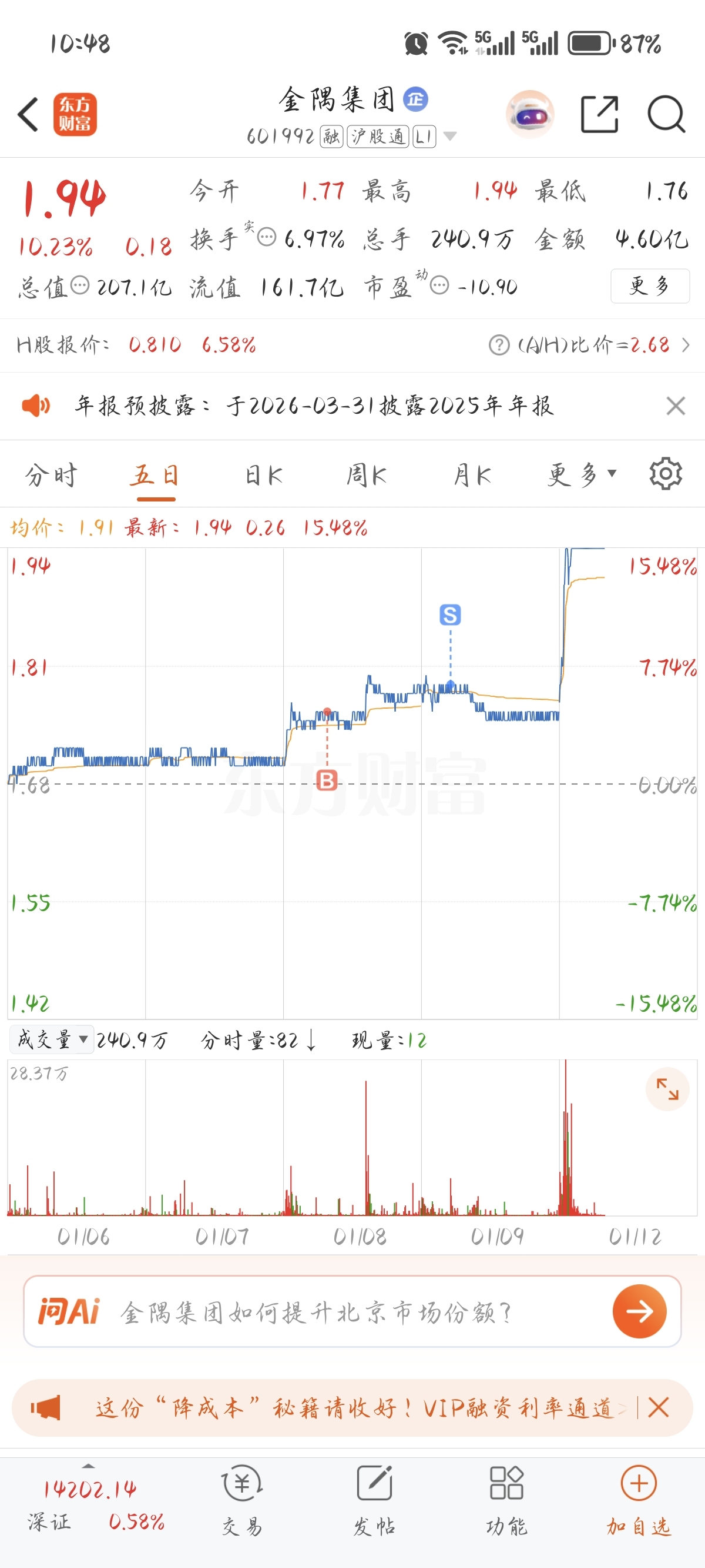 $金隅集团(SH601992)$ 自从进了股市,天天都在后悔