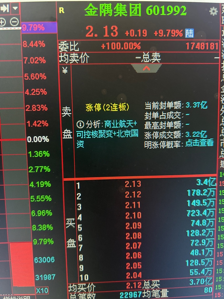 $金隅集团(SH601992)$ 这种封单有点像三板组,但是首板走势又不像。市值大的不会三板组吗?为什么以后封单几乎和最大封单一样?