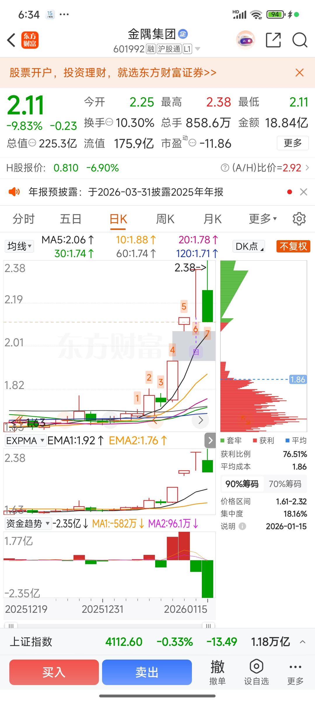 $金隅集团(SH601992)$ 金隅集团虽然地板,但底部筹码没有动,明天极有反包的预期。
