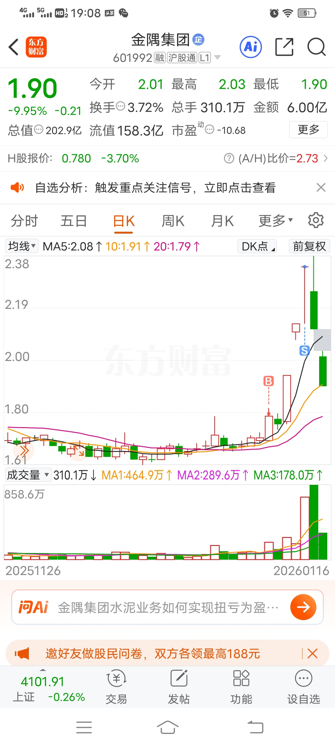 $金隅集团(SH601992)$ 还好吧