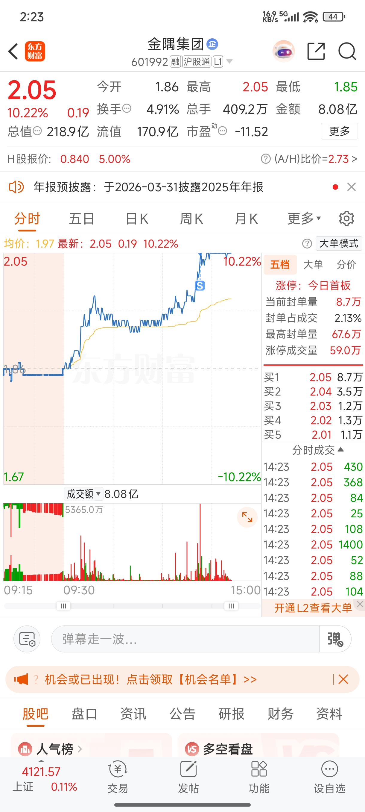 $金隅集团(SH601992)$ 一觉醒来票没了。